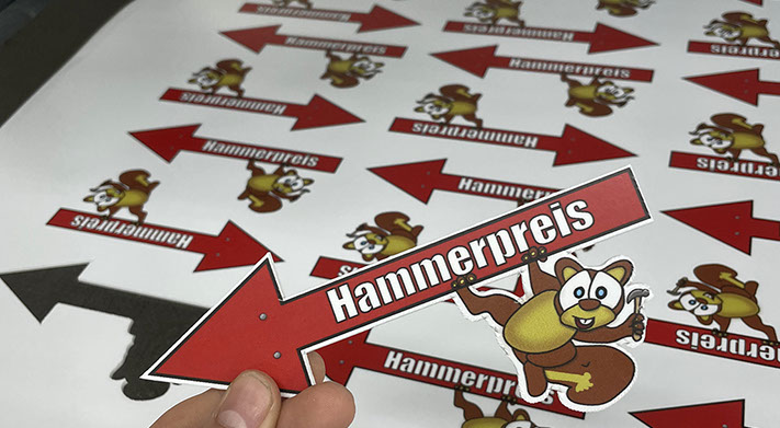 Mit unserem CNC-Plattenfräser ist es möglich, eine Vielzahl an Materialien zu fräsen, gravieren und schneiden. Hierbei können Plattenformate von 200 x 300 cm millimetergenau verarbeitet werden. Die Anwendungsbereiche liegen in der Innen- und Außenwerbung, in der Messe- und Ladengestaltung, sowie in der Anfertigung von Dekorationen und Bauteilen, sowie in der digitalen Stanzung von Druckerzeugnissen.