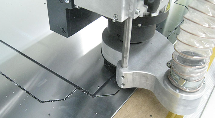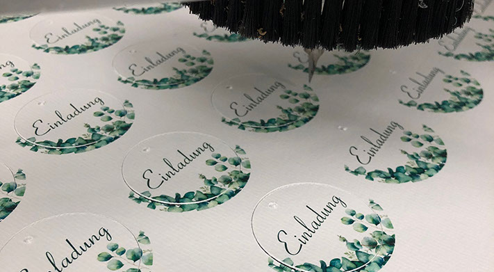 Bei der "Stanzung" von Druckerzeugnissen werden mit Hilfe einer eingebauten Kamera die Schneidemarken erkannt und im Anschluss nach Form ausgeschnitten. Als Basis für die Erstellung eines Fräsdokumentes wird eine Vektordatei benötigt.