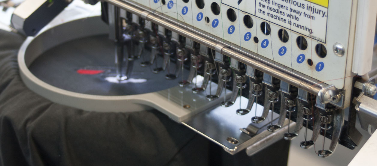 Bestickung, die hochwertige und langlebige Art der Textilveredelung. Mit dem Einsatz unserer Stickmaschine können wir Logos oder Schriftzüge auf unterschiedlichsten Textilien wie Bekleidung, Kappen, Handtüchern und Schürzen platzieren. Auch die Erstellung von Aufnähern ist möglich. Die Umsetzung von Motiven mit bis zu 15 Farben und einem maximalen Format von 380 x 400 mm sind möglich. Hierzu muss zunächst ein Stickprogramm der Vorlage erstellt werden, das sogenannte "Punchen". Auch dieser Arbeitsschritt erfolgt hausintern. Ferner verfügen wir über eine große Auswahl an fertigen Stickmotiven, die direkt verwendet werden können. Bei den Garnen benutzen wir nur hochwertige Markenqualität, mit einer Vielzahl an erhältlichen Farben.